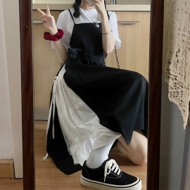 [AB478]플라이 멜빵 롱 원피스