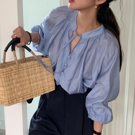 [CD868]무디 셔링 콩단추 벌룬 블라우스