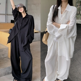 [EF037]라보 루즈핏 셔츠+와이드팬츠 세트