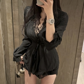 [CD356]시스루 긴팔 셔츠+끈나시+반바지 세트
